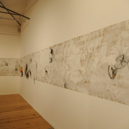 Derrière le voile, se situe comme une approche des conditions qui régissent aujourd’hui les échanges culturels et les limites imposées par le jeu politique. La réalité actuelle, marquée par la coexistence d’un nombre en constante augmentation d’interconnexions et de médiations d’une part, et de limitations de l’expression d’autre part, place la question de la communication dans le collimateur de la pensée critique. Ce souci du dialogue trouve sa réponse dans l’exposition actuelle.